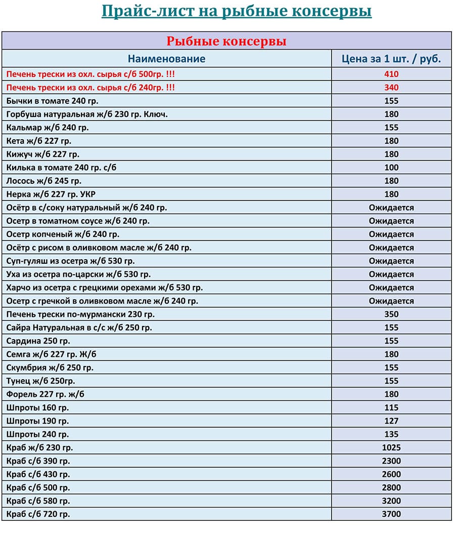 Прайс-лист рыбные консервы оптом с ценами на АПРЕЛЬ 2026 года