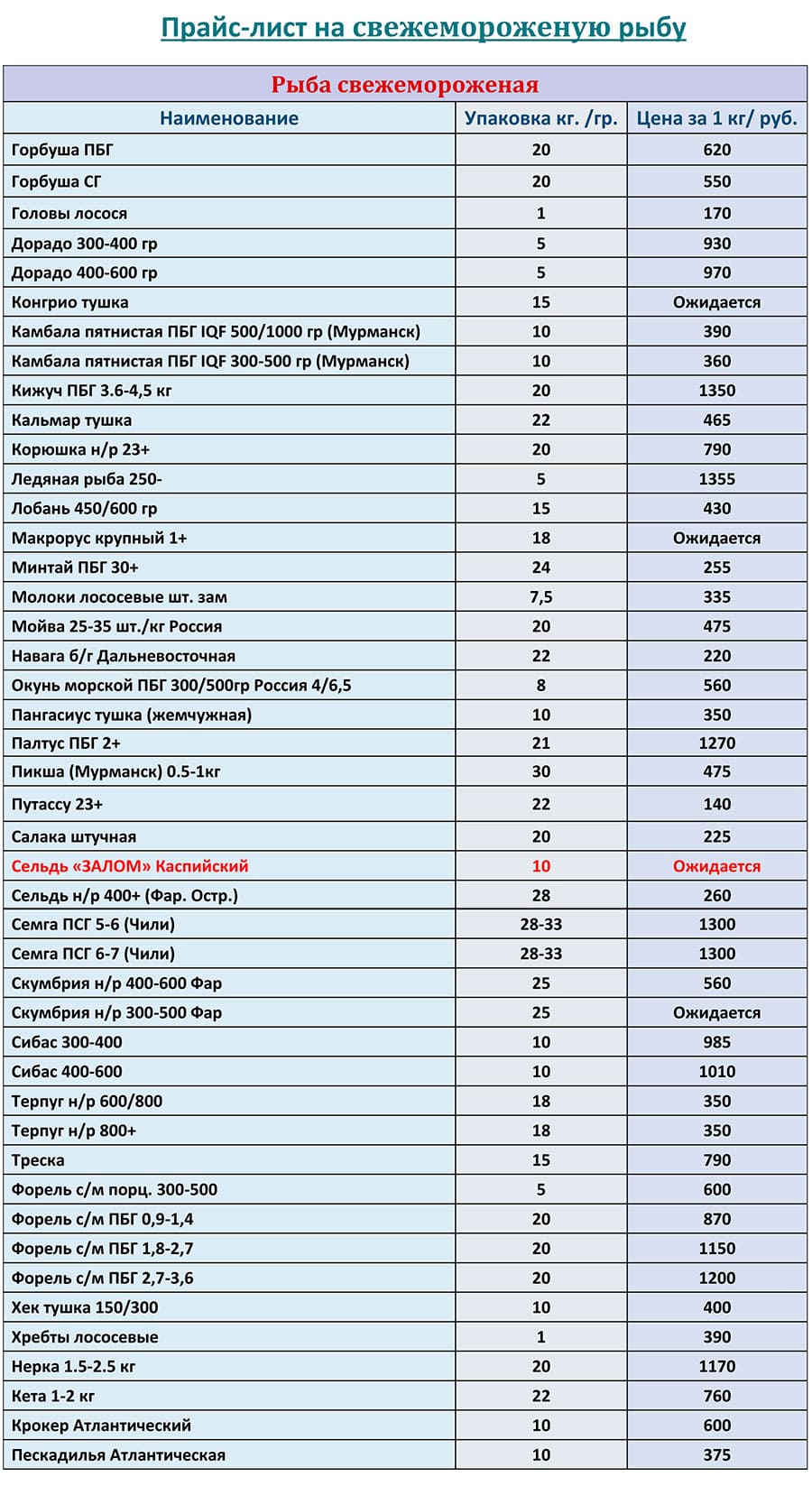 Прайс-лист свежезамороженная рыба оптом цена на АПРЕЛЬ 2026 года