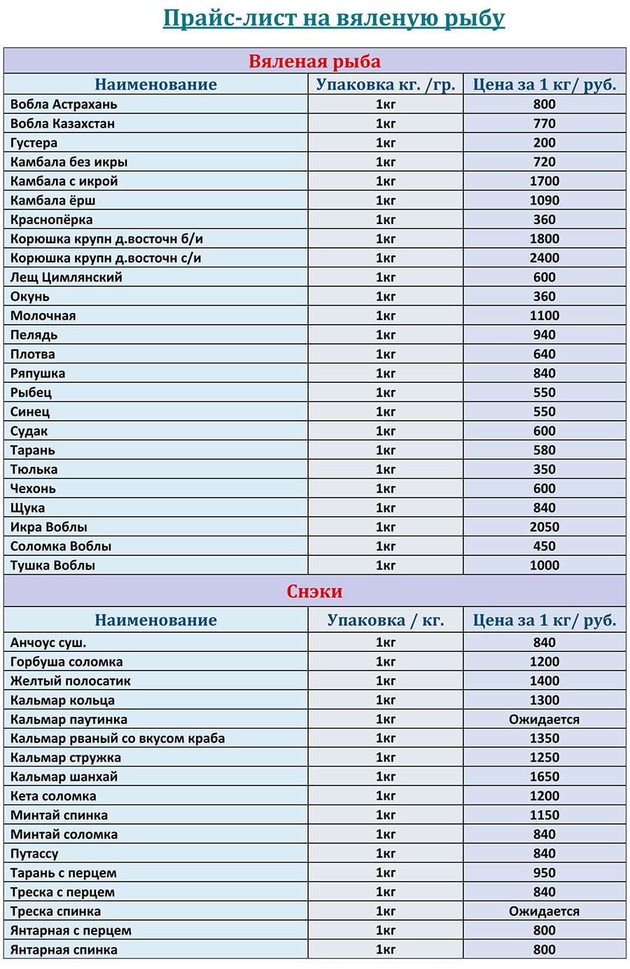 Прайс лист с ценами на вяленую рыбу оптом с доставкой на АПРЕЛЬ 2026 года